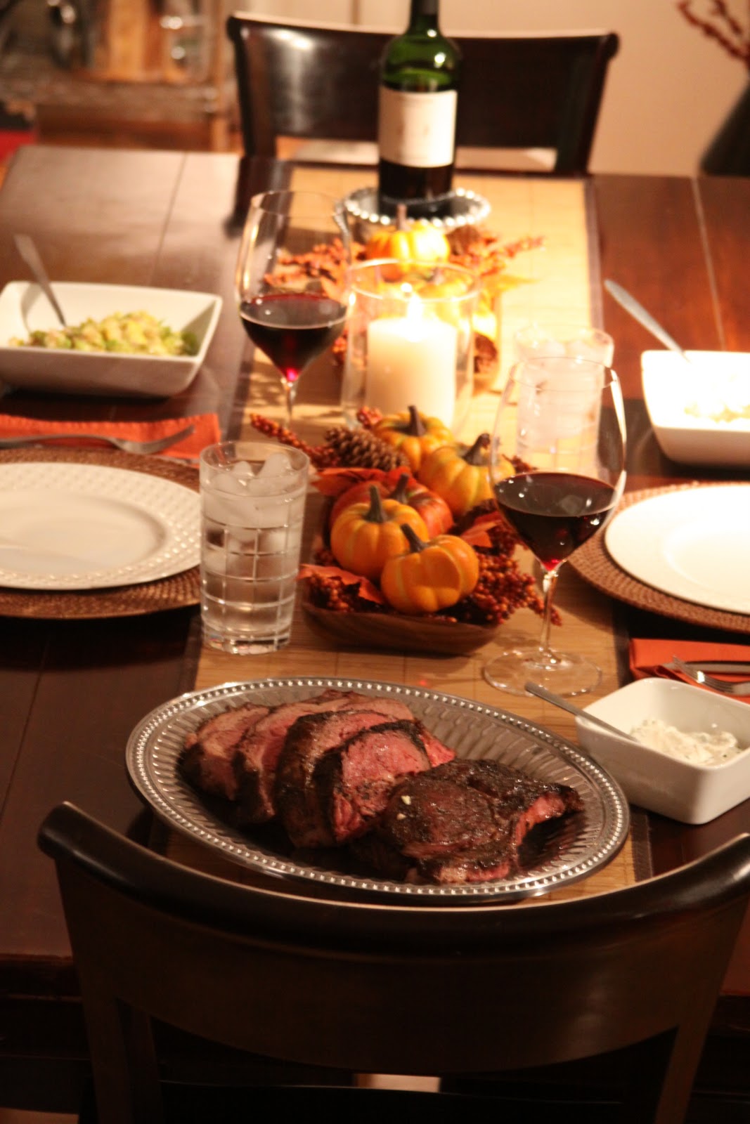 Everything worked out, thankfully. When Mr. B arrived I immediately put him to work on carving his birthday prime beast. Yeah, I don’t cut meat. Rules are rules.