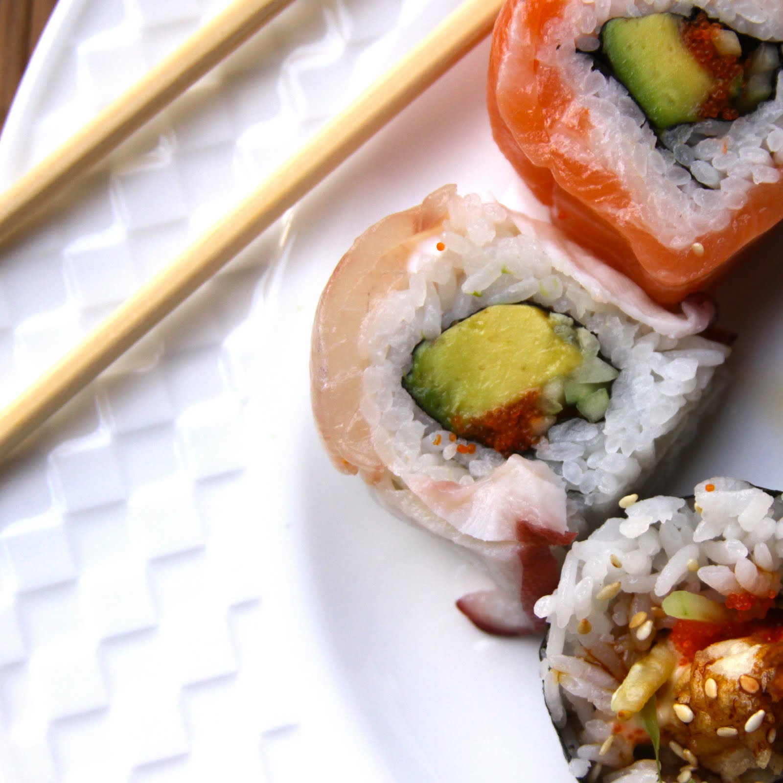 Since both of us didn’t feel like cooking tonight, the next best thing to eat that’s light and refreshing, sushi! We got carry out from our good friends down the street at Sonoda’s. They get fifty gold stars in customer service.