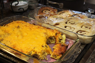 Mr. B’s family has many traditions, one being Christmas breakfast; egg casserole and fresh cinnamon rolls. Yummo.