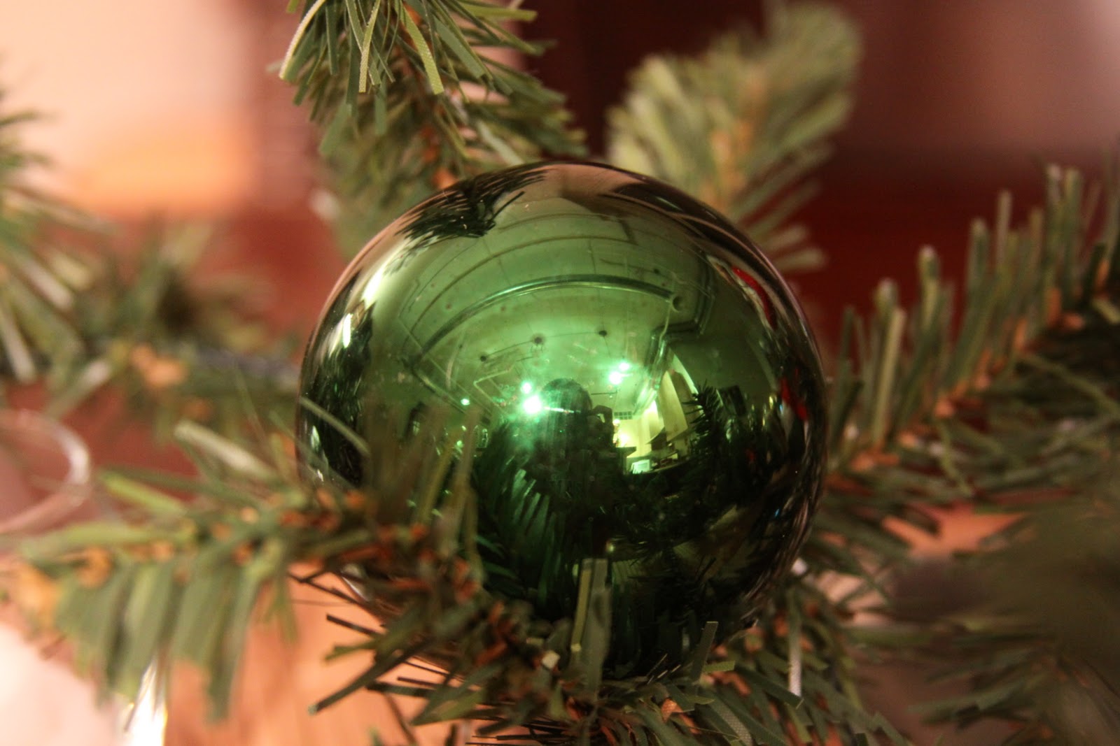 After the lights are up and running, we start hanging the ornaments.