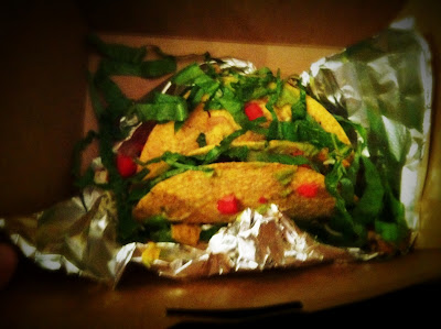 We were starving by halftime and Illegal Pete’s sounded perfect. The best thing about Illegal Pete’s? They mix up the burrito ingredients! It’s the simple things in life, right? Right. I wasn’t feeling like tackling a pound of burrito filling so the carnita tacos were calling my name.