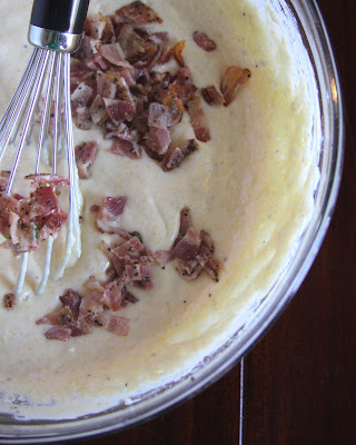 I took a basic waffle batter and threw in some bacon to the mix. Because what’s better than bacon for breakfast? Oh wait. More bacon.