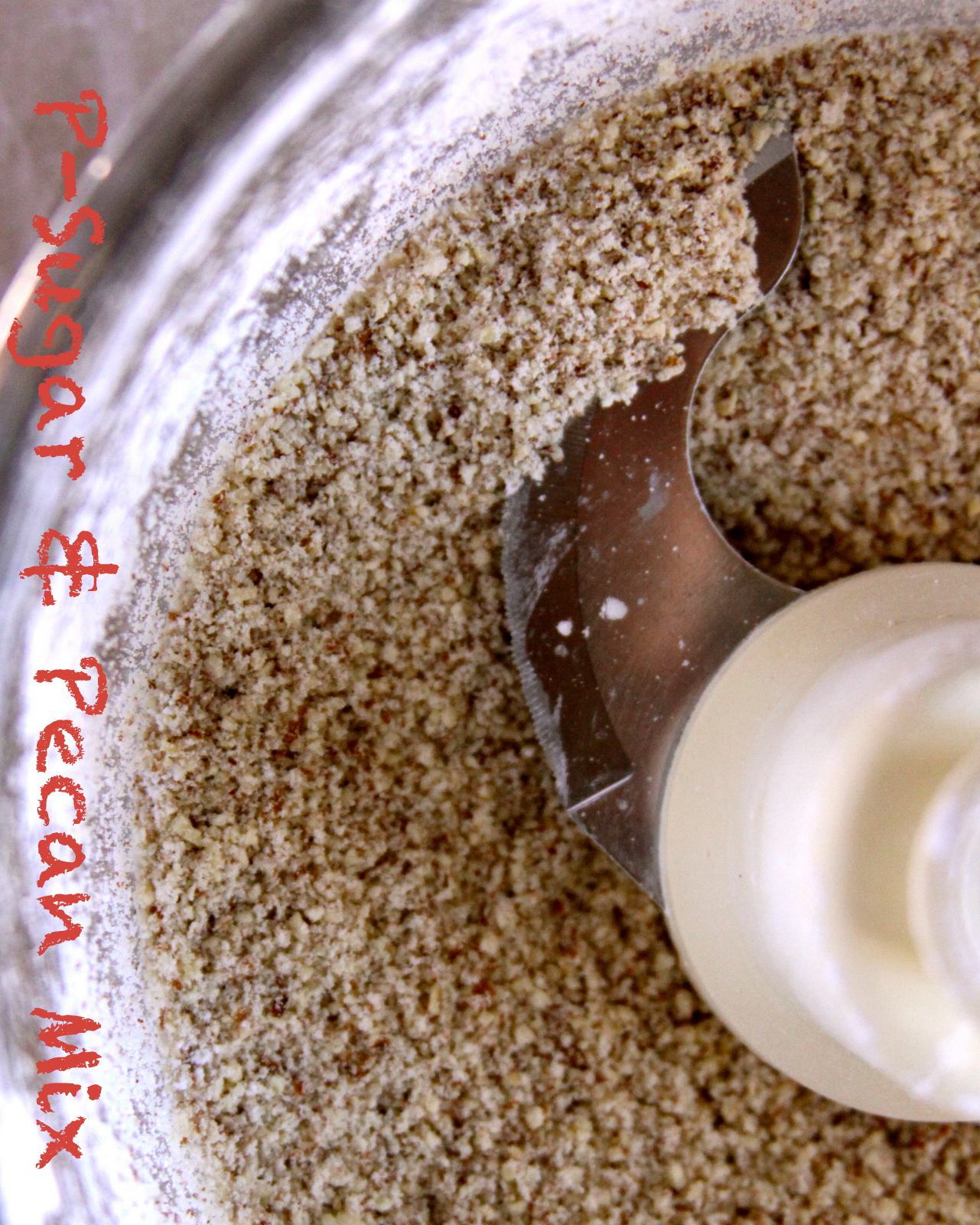 Preheat to 350°. Whisk first 4 ingredients in a medium bowl. Combine 1/2 cup sugar and pecans in a food processor; pulse until combined. Beat butter and vanilla in another medium bowl until creamy. Add nut mixture. Add dry ingredients in thirds. (The dough will be soft, but crumbly). Transfer to a work surface and knead into a ball.