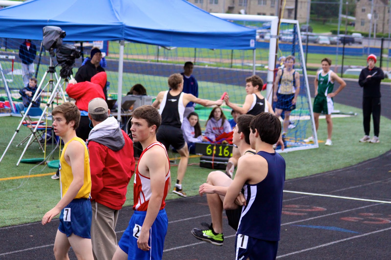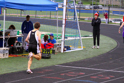 He has gotten so big! (either that or I am just getting old) He was running two events that evening. The 4X800 relay and the 800 individual. We stayed only for the relay because it was so flipping cold!