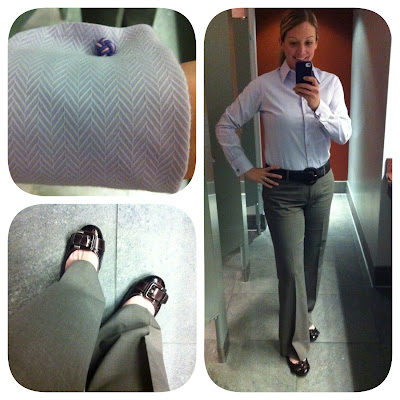 Todays outfit is one of my favorites because of the oxford. I purchased this little fellow at Pink while visiting San Francisco a few years back. I fell in love with this herringbone stitch and cuff links. You know what? After looking at this picture, I really need to upgrade my flats. Any suggestions?