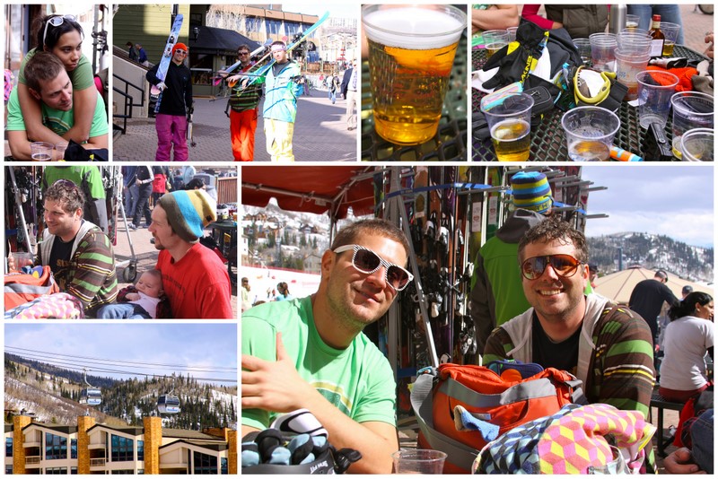 It was scorching hot. The high for the day ended up being around 70. OMG. Since Max and Listy have baby Chance they split time skiing so Mr. B, AC, Listy and I skied in the morning . We had fun but the snow was pretty crappy. Spring skiing is really for partying.