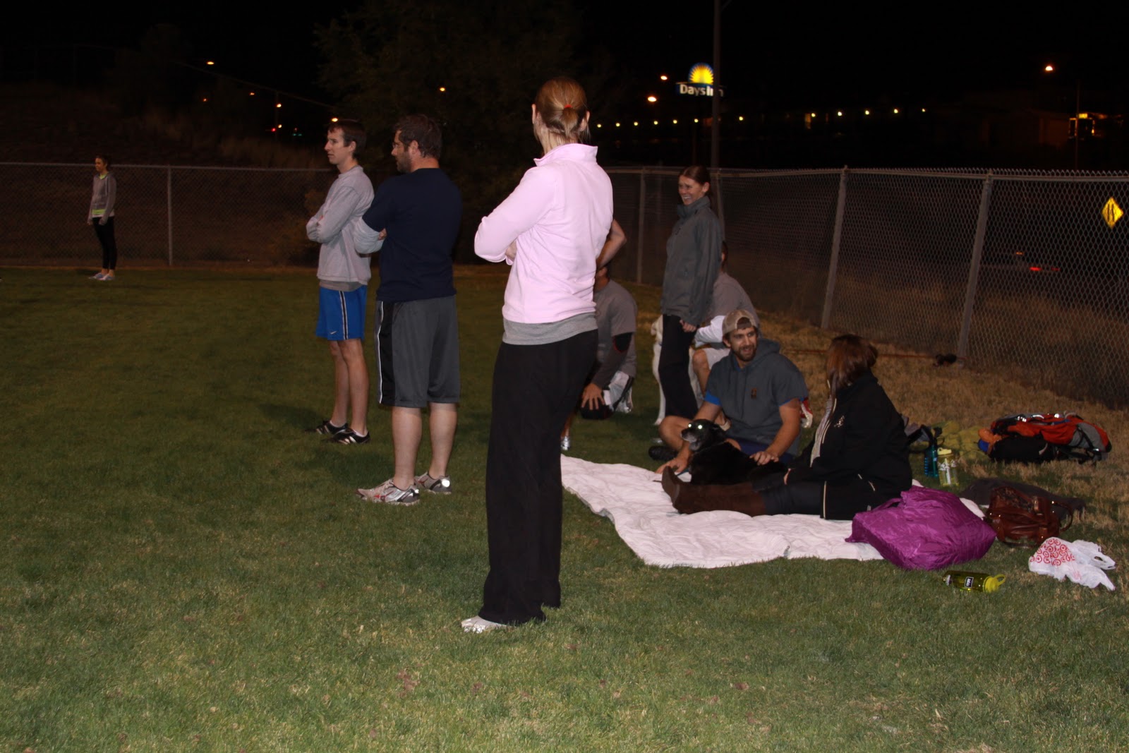 The game actually went faster than I thought. We played good defense and they had some descent kicks. But it all game down to the bottom of the 7th. We were the home team and needed two runs to win the game. We had runners at 1st and 2nd with two outs, and I was the runner on 1st. Joy.Cook was next to kick, no pressure. As soon as he kicked the ball and it went streaming passed the second baseman, the lights went out on the field. OMG. Not being able to see, I ran to second and tried to dodge the ball because I could barely see the right fielder out of my peripheral grab the ball and gear up to throw it at me. Well, he nailed me on my hand that was covering my head one step before I touched second. Game over.