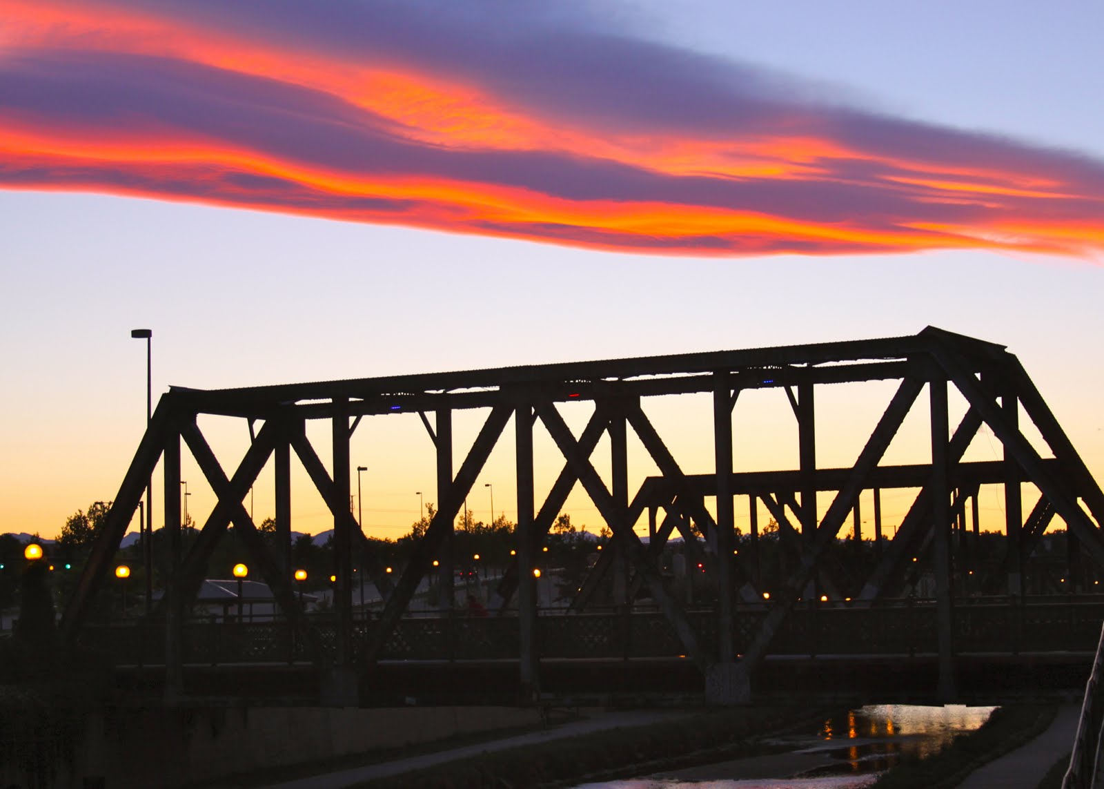 Bee-yoo-ti-ful picture at the end of the bridge in sunset.