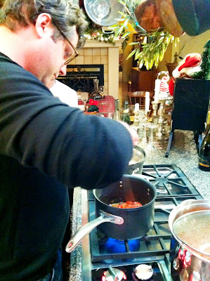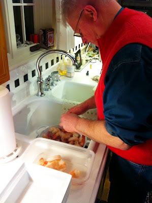 Chuck took the tails off, while Susie cooked the rice. Mr. B worked on the tomato gastrique for tomorrows Christmas dinner. And I, yeah, I provided moral support:)