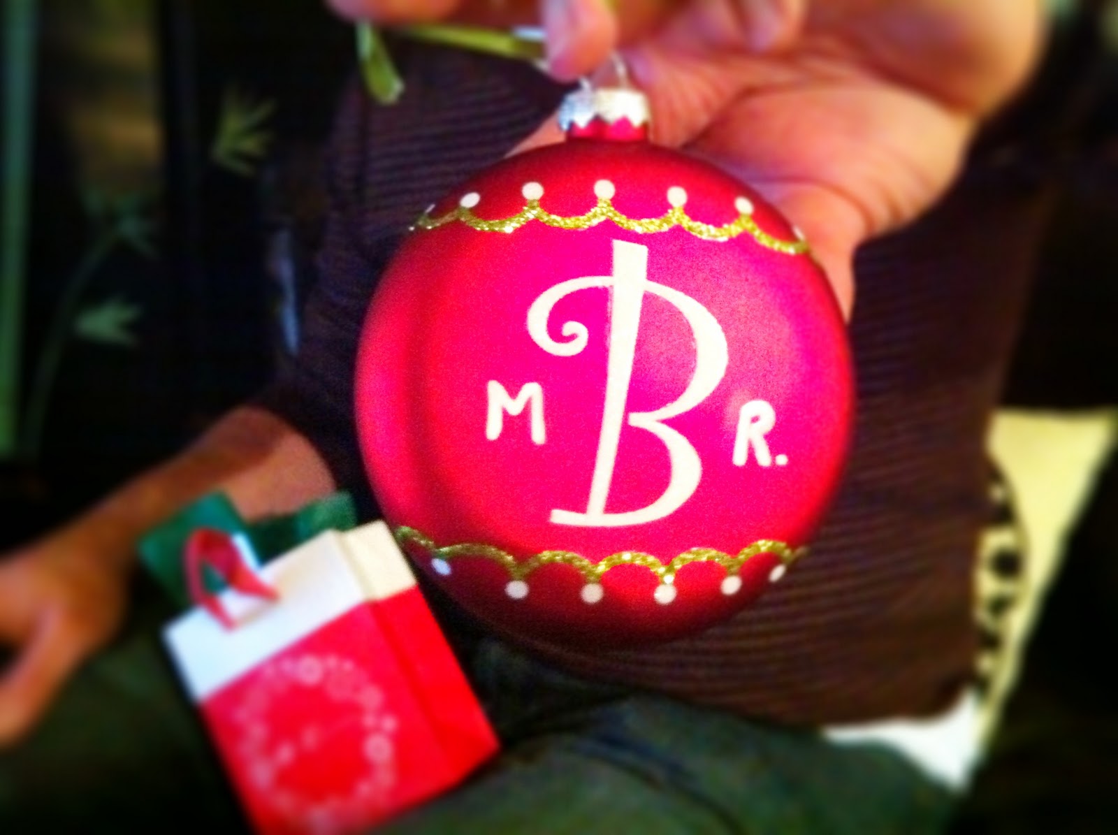 After dinner I decided to surprise Mr. B early with his ornament. Every year we give each other ornaments, and last year Mr. B gave me this guy. Hysterical. This year I thought to pay homage to his CGM persona…