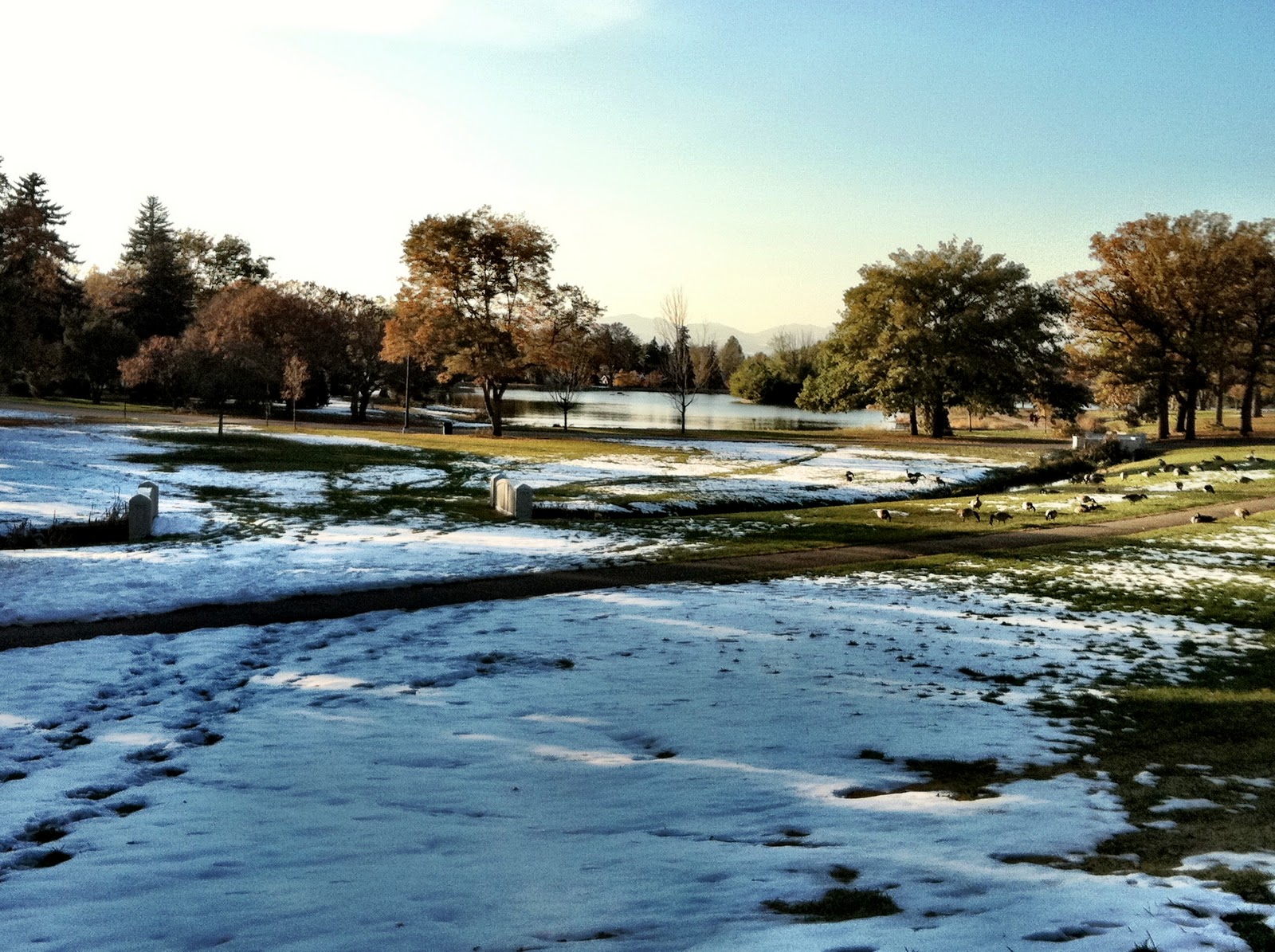 Since the weather was gorgeous outside, we decided to walk/jog around Wash Park. There was still a good amount of snow on the ground, but it was absolutely breathtaking with all the fall foliage around.